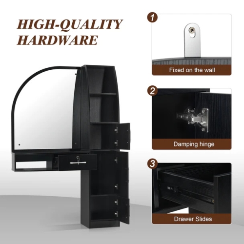 - Sturdy & Steady: To be wall mounted, this salon station could avoid falling down during work, which makes the station more stable. The thickness of board is strong enough which could ensure this nice station sturdy.