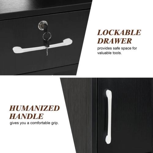 - Classic Design: The height of the station is suitable for the daily barber business The curved edge design is user-friendly and avoid being hurt. The arc drawer handles provide a perfect grip.