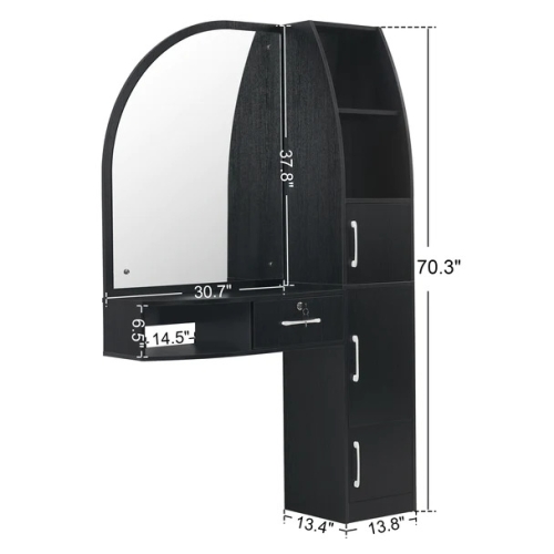 - Storage Capacity: The styling station contains an abundance of storage space with 3 shelves, 3 cabinets and 1 drawer, which provides you with plenty of space to classify your tools in an organized manner. The frequently used tools can be placed on open and spacious shelves for easy access.