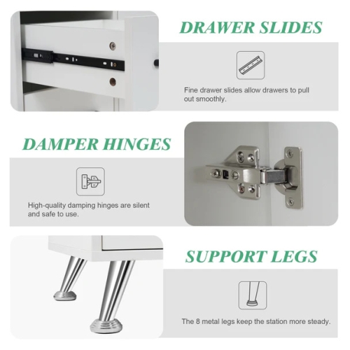 - High-quality Material: The polished particle board of the station is textured and fancy. The drawer slides and damping hinges are smooth with no lag and no sound to get an excellent user experience.