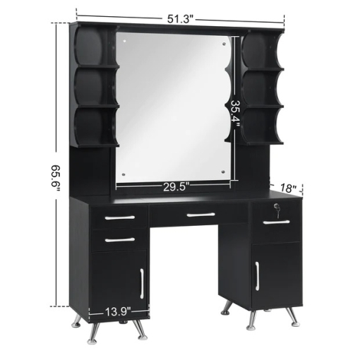 - Ample Storage: This workstation has plenty of storage space, it includes 6 shelves, 2 cabinets and 5 drawers to make your space orderly. This station cleverly uses space, can accommodate a variety of different shapes of items to make your environment cleaner and create coordinated organization in any hair salon.