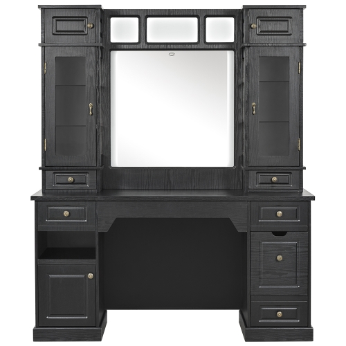 Large counter space with pull out drawer Wall mount mirror with free standing vanity station.