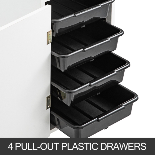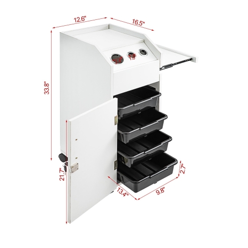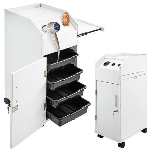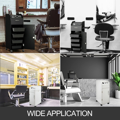 - LARGE STORAGE SPACE - This cart has 4 sliding drawers, 3 hair dryer holes and spacious top working area that provide expanded work surface. Side tray in the cart that can slide in and out provides a extension storage space.