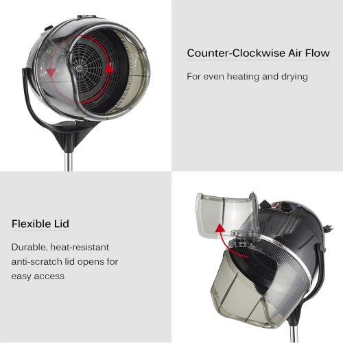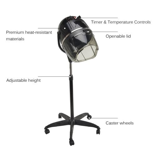This professional stand-up hairdryer provides you with the ideal hands-free hair-drying experience and salon-quality results in no time. Whether your hair is relaxed, color-treated, or natural, moisture is critical for healthy hair, and a hooded hair dryer provides your hair with the healthiest way of drying. Hair that is naturally curly or kinky tends to be drier and more fragile than straight hair, so the key is to not only coat the surface of the hair shaft but to ensure whatever moisturizing product you use actually penetrates your strands. Try out our newest offer, this versatile hooded hair dryer is manufactured with rust-less steel heating elements to ensure durability and performance. Tons of adjustments are available so every user can find their favorite position when drying their hair. Perfect for home use or hair salons.