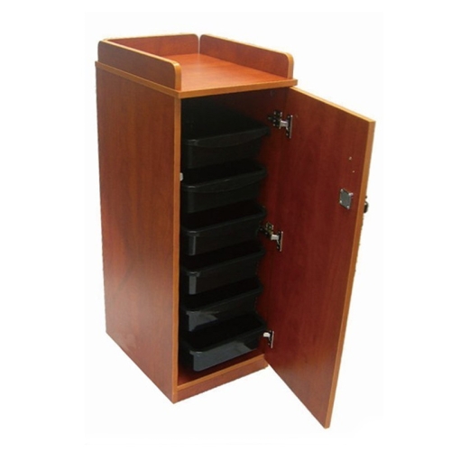 The Cart has 6 removable trays for easy storage and features a locking door. This Cart complements our line of Styling Stations, Mirrors and Manicure Tables. The Mobile Cart comes with a wheel kit for easy mobility.