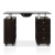- Luxurious black frosted glass top w/rounded edges raised on steel pedestals.