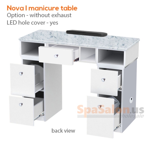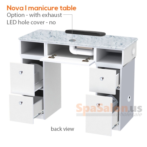 * With Exhaust vent: Vent will always be in center of table. The customer can choose to vent it out of either side the right or left. It is interchangeable