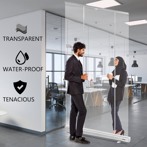 • PRACTICAL DESIGN - Two support aluminium alloy feet and carbon steel rod further facilitate the usage of our standing divider, which is effortless to unfold. Roll up banner adopt clip top rail, and PVC transparent film was installed,it is very clear it does not hamper or block anyone's view. Our product does not need to be used with additional posters. If you need to use another poster, please cut it to the right size.