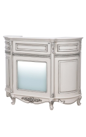 - White design with silver accents and marble top.