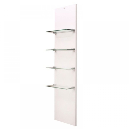 The Vina wall mounted Display shelf is made to function to any wall space and also made to fit next to styling units with a simple but elegant Design with frosted glass shelving to bring the viewers attention straight to the products added to each shelve.