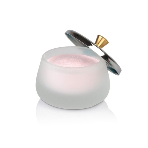 Beautiful small dappen dish holds powder during acrylic services. Its low, sturdy design is great for a busy workstation area, and comes with a metal lid to protect powder when not in use.
