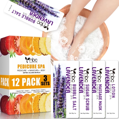 [Package Includes]: Exfoliating Foot Spa Pedicure Kit consists of 3* Bubble Salt, 3*Sugar Scrub, 3*Massage Mask, and 3*Massage Lotion for a 4-step foot spa at home.