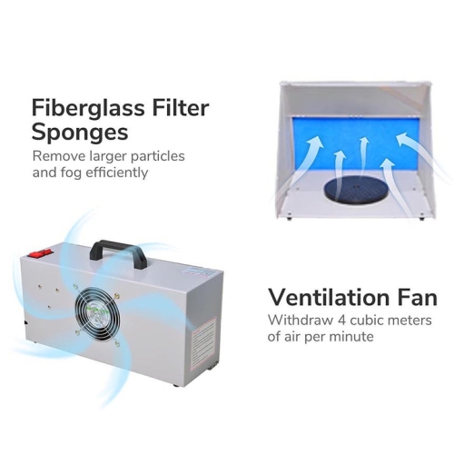 Airbrush Paint Booth with Powerful Fan, Fiberglass Filter Sponges and Revolvable Turn Table!! Perfect to filtrate paint fog and remove larger particles, especially good for the model builder or designer.