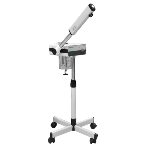 The facial steamer provides warm steam that is used to cleanse pores and rejuvenate tired skin. Is also uses a UV light to prevent contamination and features a rotating head for functionality. Additionally, it features a large glass water reservoir enclosed in acrylic to prevent breakage.
