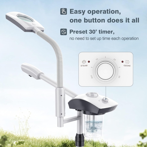 The latest generation of 2-in-1 standing facial steamer with 3X magnifying lamp