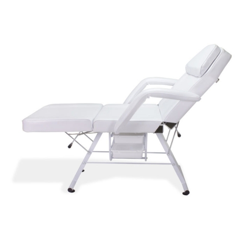 The Parker Facial Chair is a professional and economic facial bed. It has a elegant design that will accentuate any spa décor. A great feature about this facial chair is that it can be used for massaging, waxing, tattooing, and body piercing. Additionally, it offers a removable face cut out pillow, adjustable backrest and leg rest, removable armrests, sanitary paper holder, 1 hydraulic stool, and 2 storage drawers. Comes available in black or white.