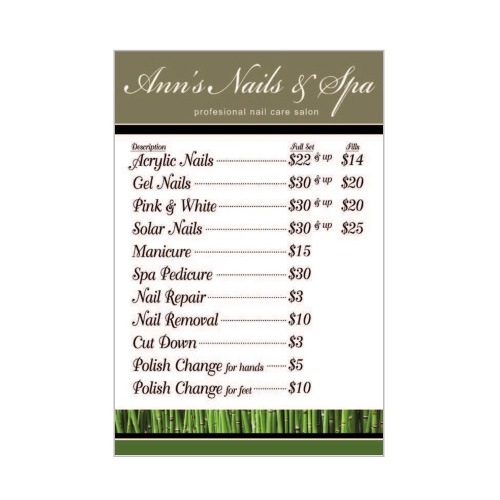 - Our custom pricelists are printed on thick glossy photo paper