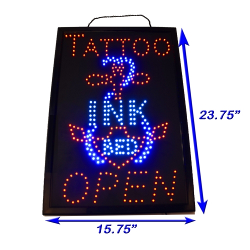 - Animated Blinking RED LED Lights draw attention to your shop by spelling out and blinking "OPEN"